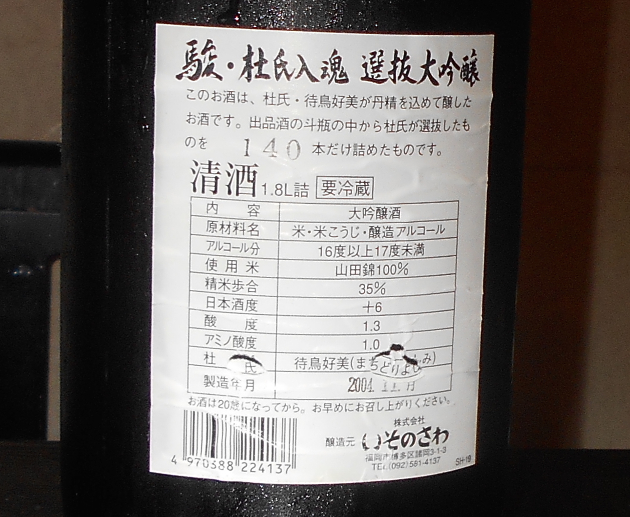 斗瓶の中より待鳥氏が選んで瓶詰めにしたもので、
